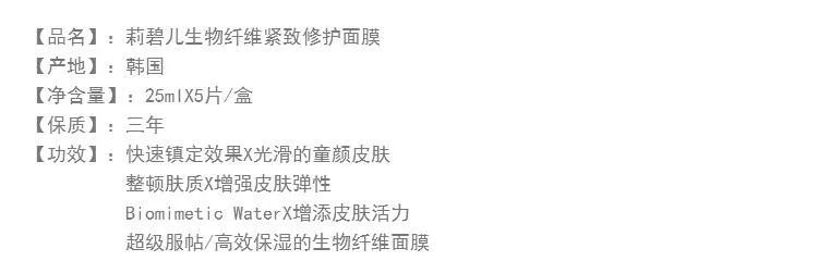 这款是我最最最爱用的单品,完全超出预期的一款面膜,特别舒服。韩国莉碧儿生物纤维面膜,是最近在韩国超级火的院线级医美产品。面膜我用过不少,但是这款不一样,面膜有一个时代,是膜纸从无纺布过度到蚕丝,而这款面膜精华载体的面膜纸是大家之前都没有见过的,椰汁发酵的生物纤维面膜,被火烧伤后治疗用的就是生物纤维,可以吃的面膜纸,(嗯,他的品牌创始人经常在品牌宣传中直接吃自己的面膜)