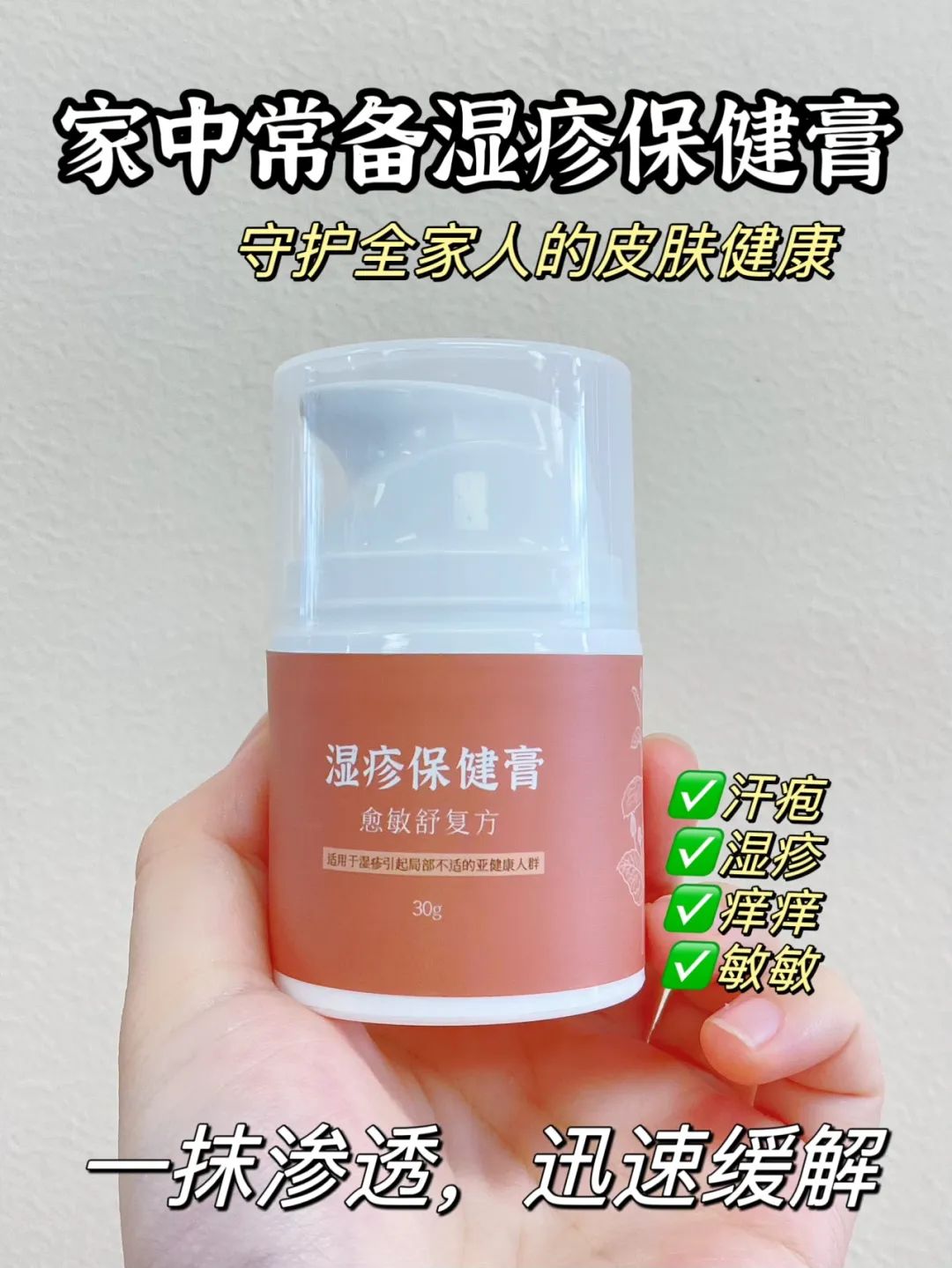 不管是季节性的皮肤问题,还是敏感问题,或者是平时的蚊虫叮咬,大部分皮肤痒痒问题,都可以试试湿疹保健膏,一涂一抹