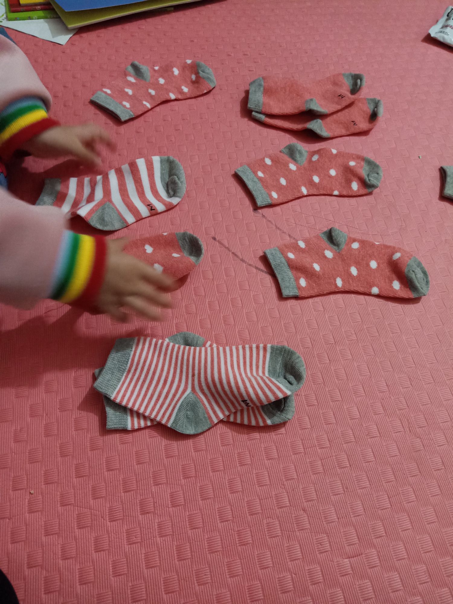看宝宝会不会正确找袜子。玩了一会宝宝都找对了,感觉挺好玩的。