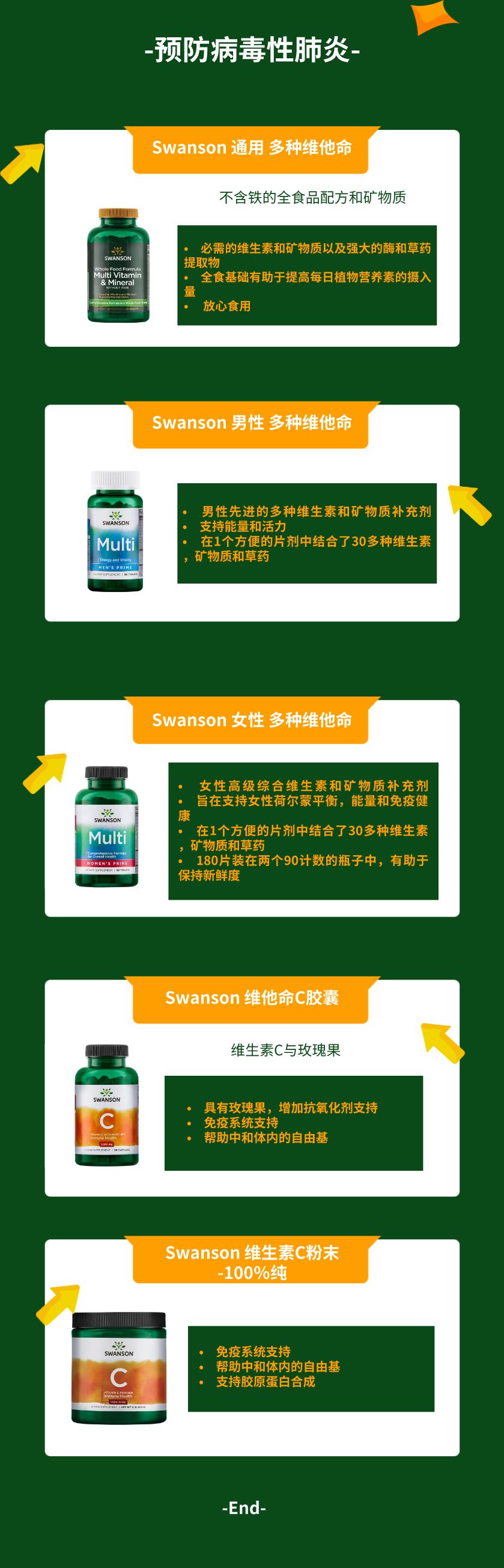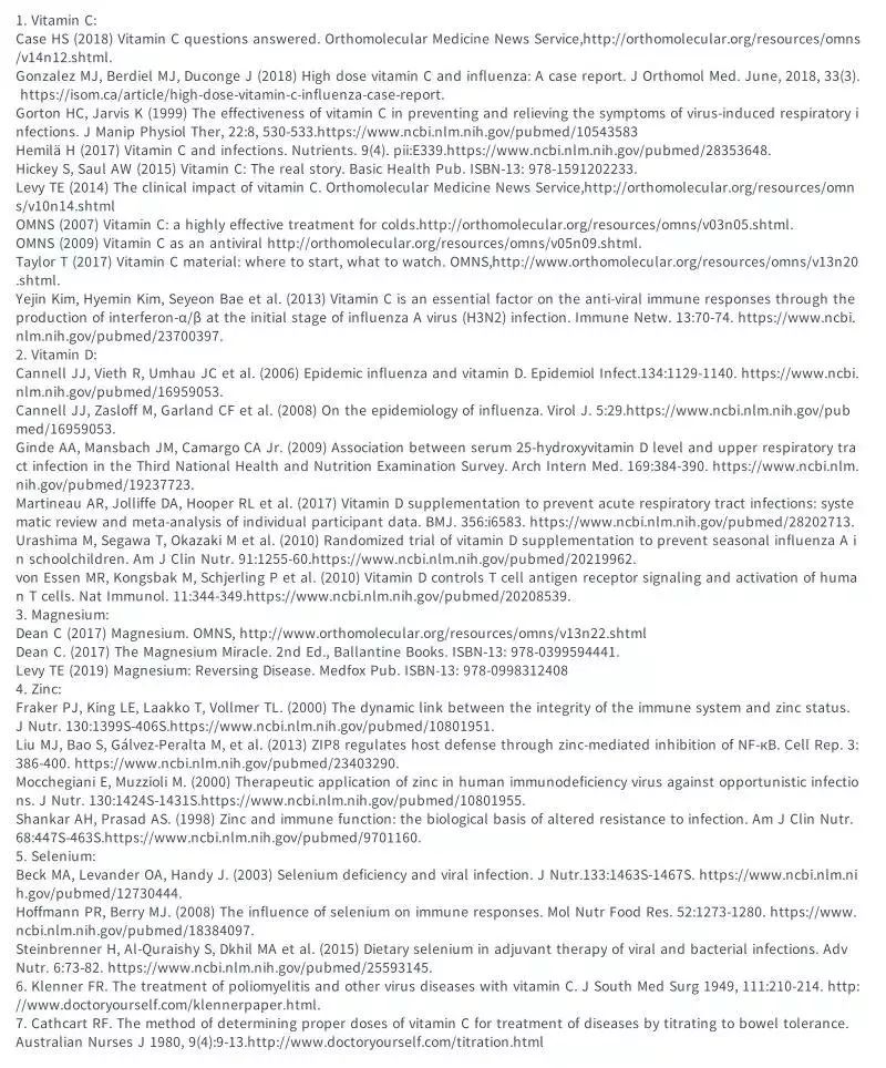 总结一下:哪些治疗手段对病毒性肺炎的抑制和治疗是最有效的,就留给医生们继续研究吧,我们还是乖乖地每天吃含有丰富维生素C的水果和蔬菜,但这可能还不足够, 从现在开始每天服用维生素C营养补充剂是个好方法。