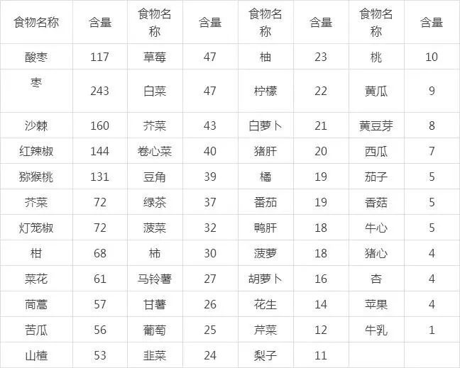 根据北京协和医院临床营养科2019年按每100克所含VC毫克发布的排名顺序,排在前列比较突出的食物如下: