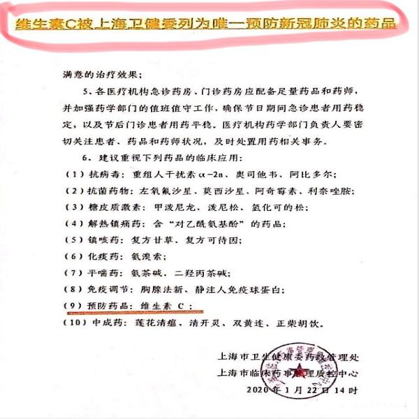 其实,在2020年1月22日,维生素C就被上海卫健委列为唯一预防新型冠肺炎的药品。