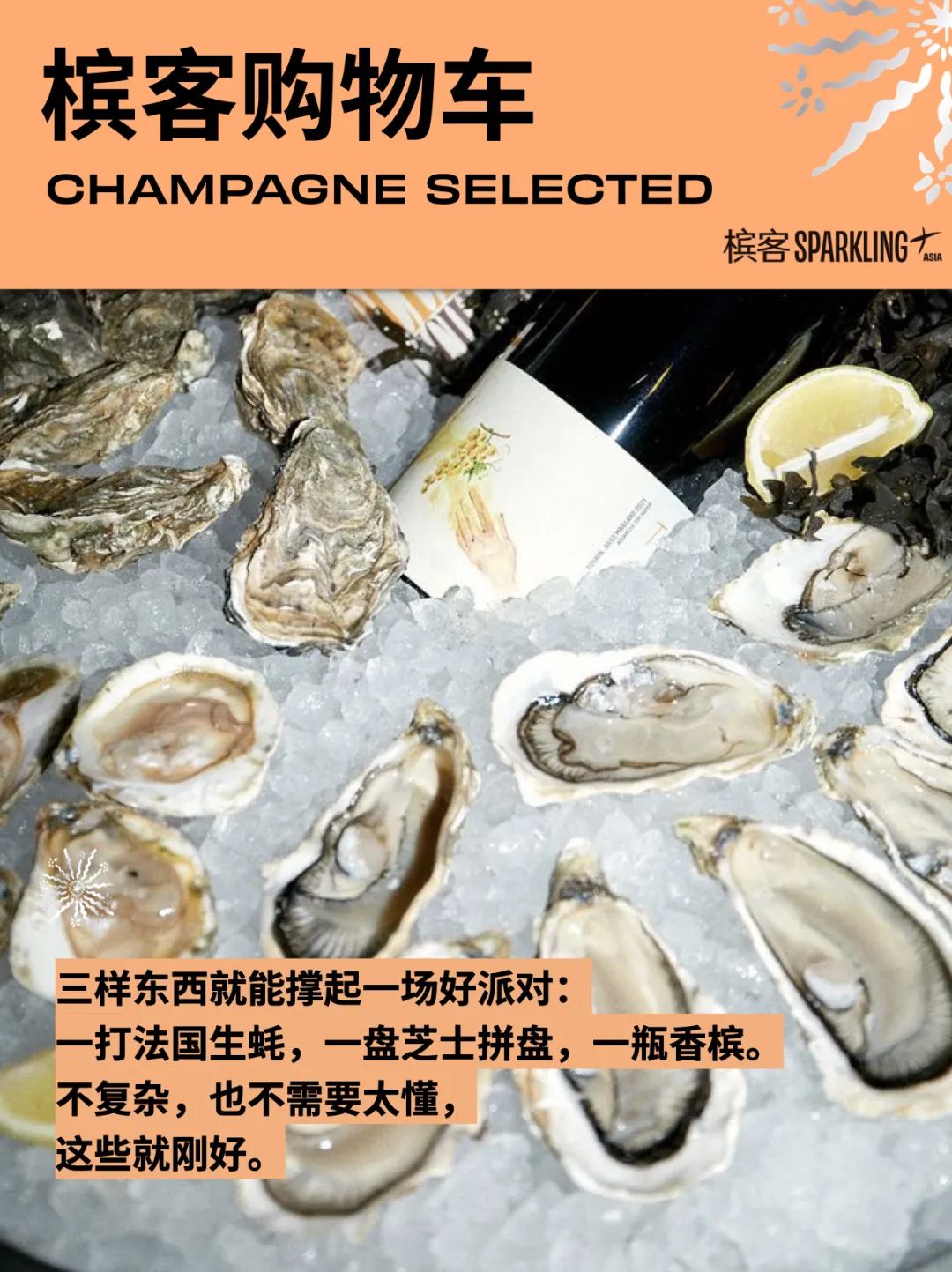 生蚝、芝士、香槟,一键选好,慢慢开一晚也不急。