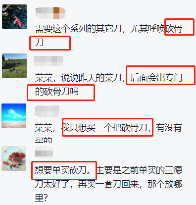 菜菜也做过努力,之前定制刀具套装里就含了一把钼钒钢砍骨刀,且利用组合优惠把价格拉下来了。