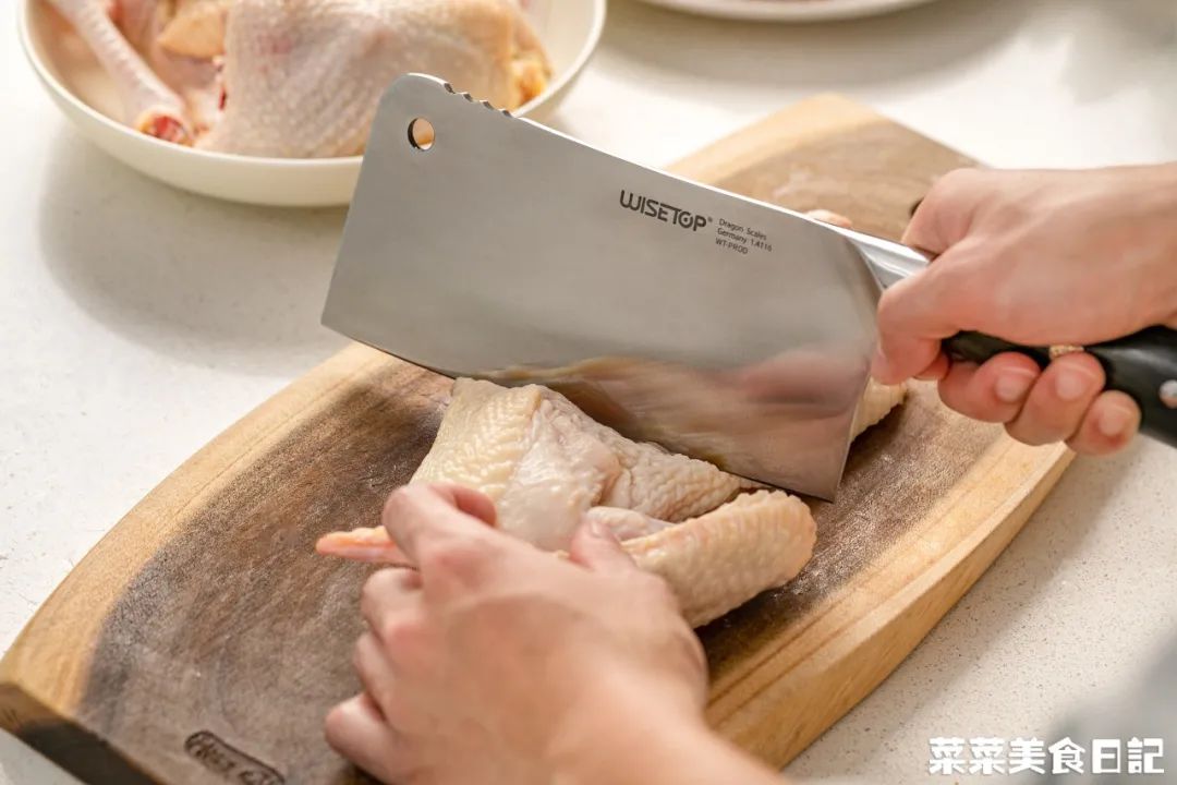一刀就能砍下去,非常利索,不会把鸡肉、鸡皮砍得乱七八糟!