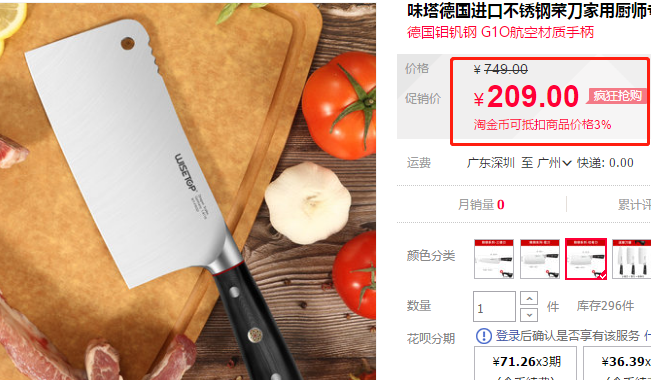 喏,就是这把德国进口钼钒钢制成的砍骨刀,几乎市场价的半价就能入手!