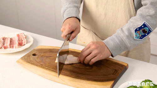 换上更重的更锋利的砍骨刀,一起一落,不仅轻松还能快速剁好一份肉馅,比普通菜刀剁得更烂。