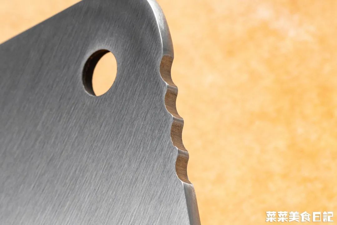 刀背上还设计了的碎骨波浪纹,还可以先敲开块头大的骨头,再斩骨,轻松解决各种难以解决的大骨头问题。