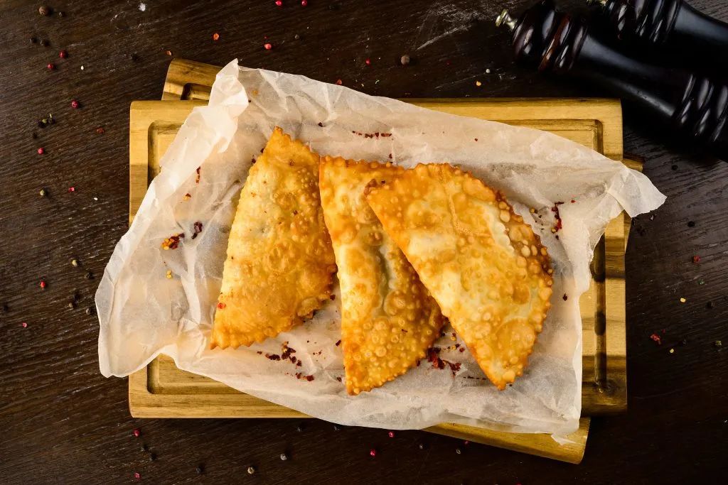 把馅料装进面团里,捏成饺子,下锅一炸,出锅冷却即可食用。