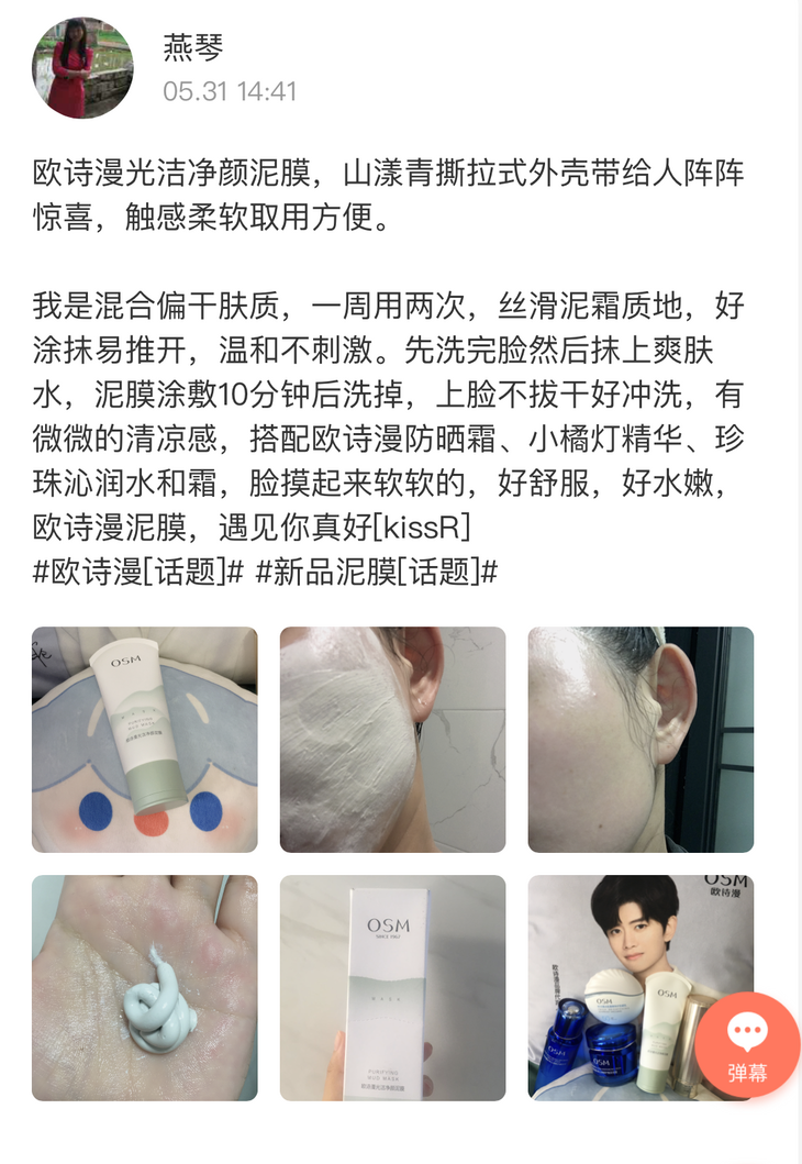 “欧诗漫这款泥膜真是宝藏级别 ”