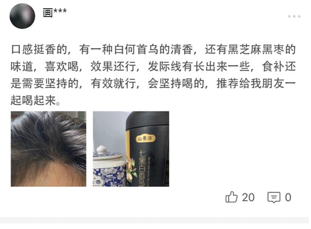 包装精致,价格实惠。里面的七黑和白何首乌很地道,尝了下味道蛮好吃的,很香,对头发也很好,以前两个月染一次头发,现在看见头发根开始变黑,再等等都黑了,就不用再染发了,而且很营养,感觉精神都提升很多!