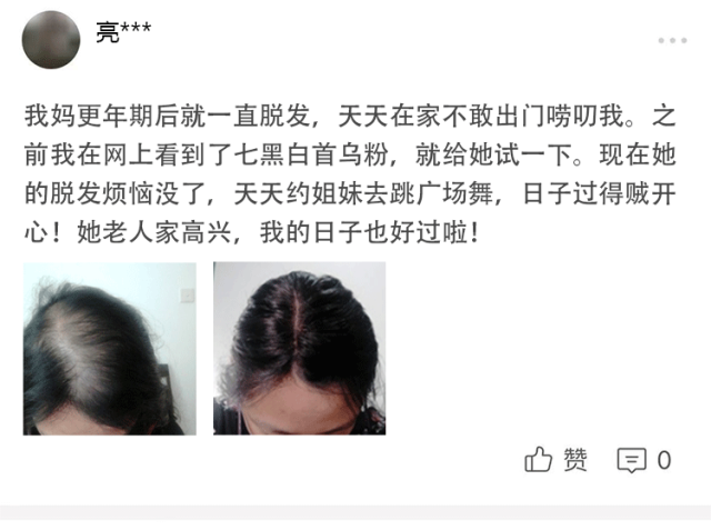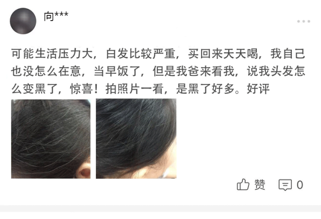 老妈岁数大了头发掉的很多,发量也越来越少人。看到吃白首乌七黑粉可以养头发,于是就买了一箱给老妈,当早饭了,吃起来真的很香 很好吃,带着淡淡的香味。头发是黑了不少,睡眠也好了很多。