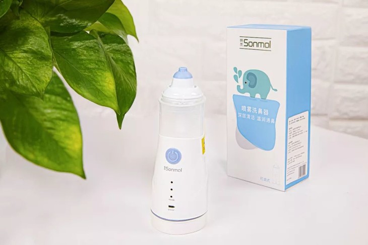 这台电动喷雾洗鼻器的工作就是将生理盐水雾化后并在脉冲震动的作用下,以一种更温和的方式浸润鼻腔,清洗鼻腔内的「脏东西」,让鼻腔更舒适。