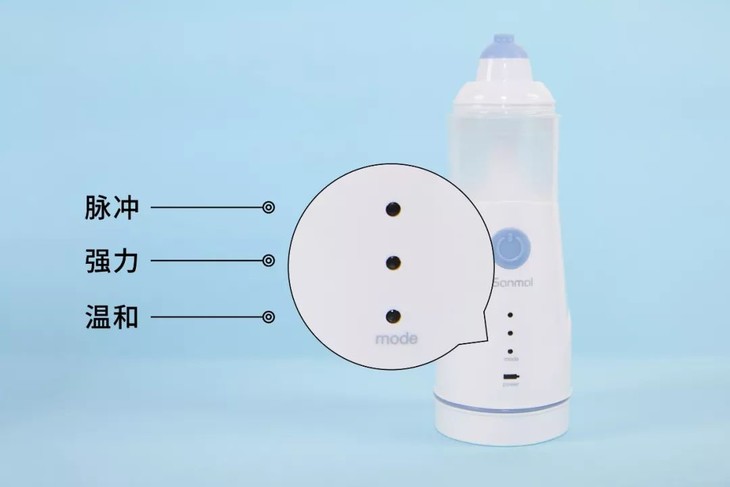 这台电动喷雾洗鼻器一共有温和、强力、脉冲三档强度,可随意调节,满足不同年龄以及鼻腔状况。