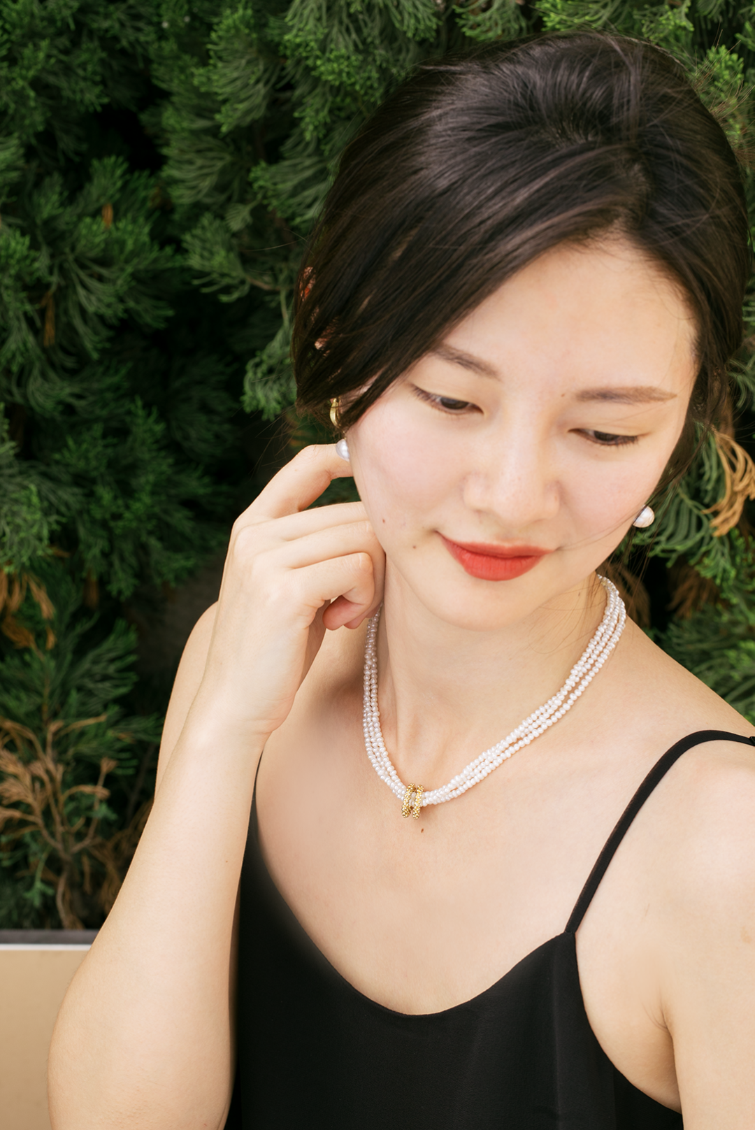 珠子是最小的小米珠——直径3mm的淡水珍珠,日常戴也不觉得夸张。搭配小黑裙,风情感就出来了~