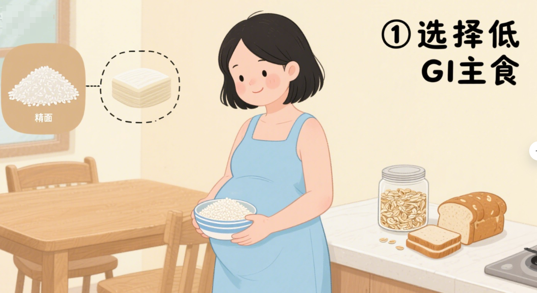 用糙米、燕麦、全麦面包等粗粮替代精米白面,延缓血糖升高