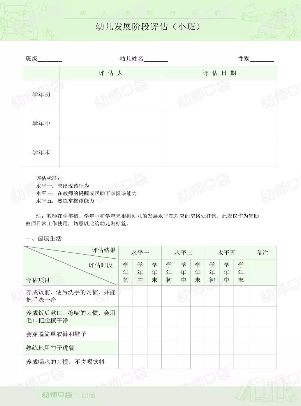 这张表清楚地罗列了评估标注、项目、时间等重要信息,帮助幼师更好的完成评估工作。