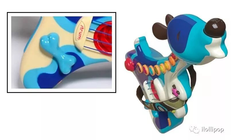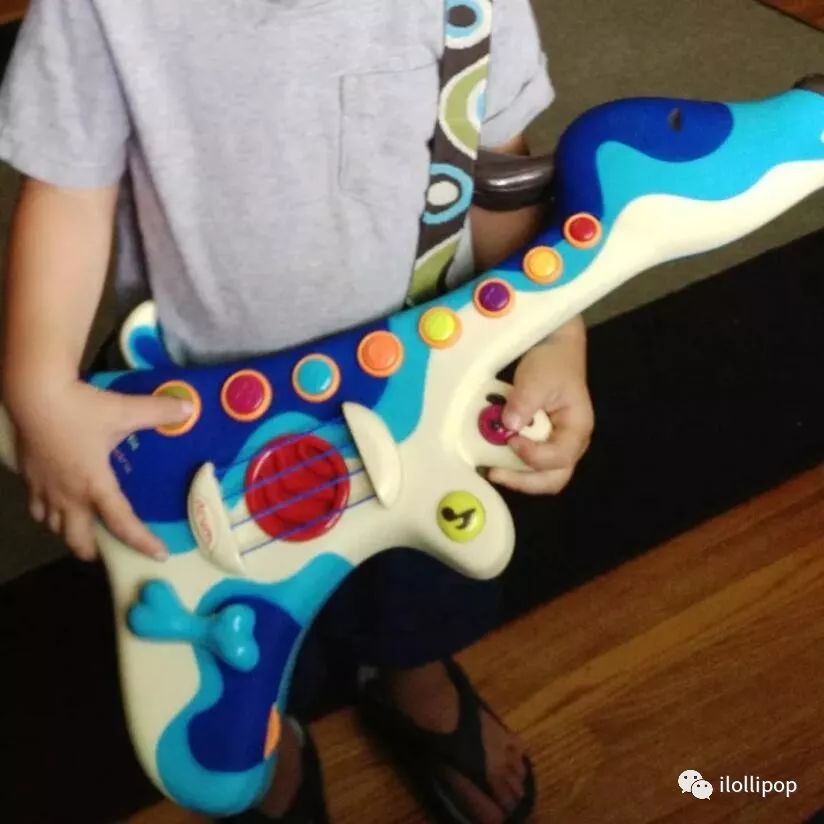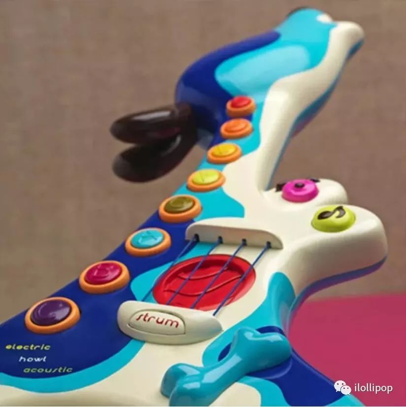 B.比乐小猎犬吉他,外形打造成了帅气酷炫的汪星人,作为宝宝的音乐启蒙玩具,小猎犬吉他的按键和吉他弦不仅保留了吉他的特点,还进行了趣味设计及改良,是一款专属于宝宝的有吉他feel的乐器。