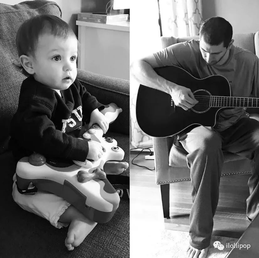 若是家有同样爱好音乐的老爸,两人还能组个小小乐队~吉他和弦搭配童趣小狗叫声,圆了共同的音乐梦。