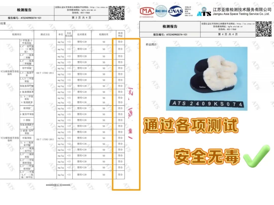 通过质量检测,各个指标均符合标准,接触皮肤安全无毒,放心穿~