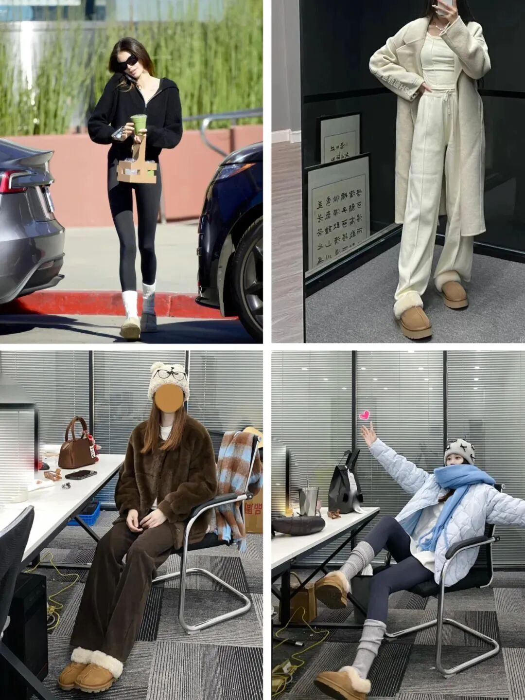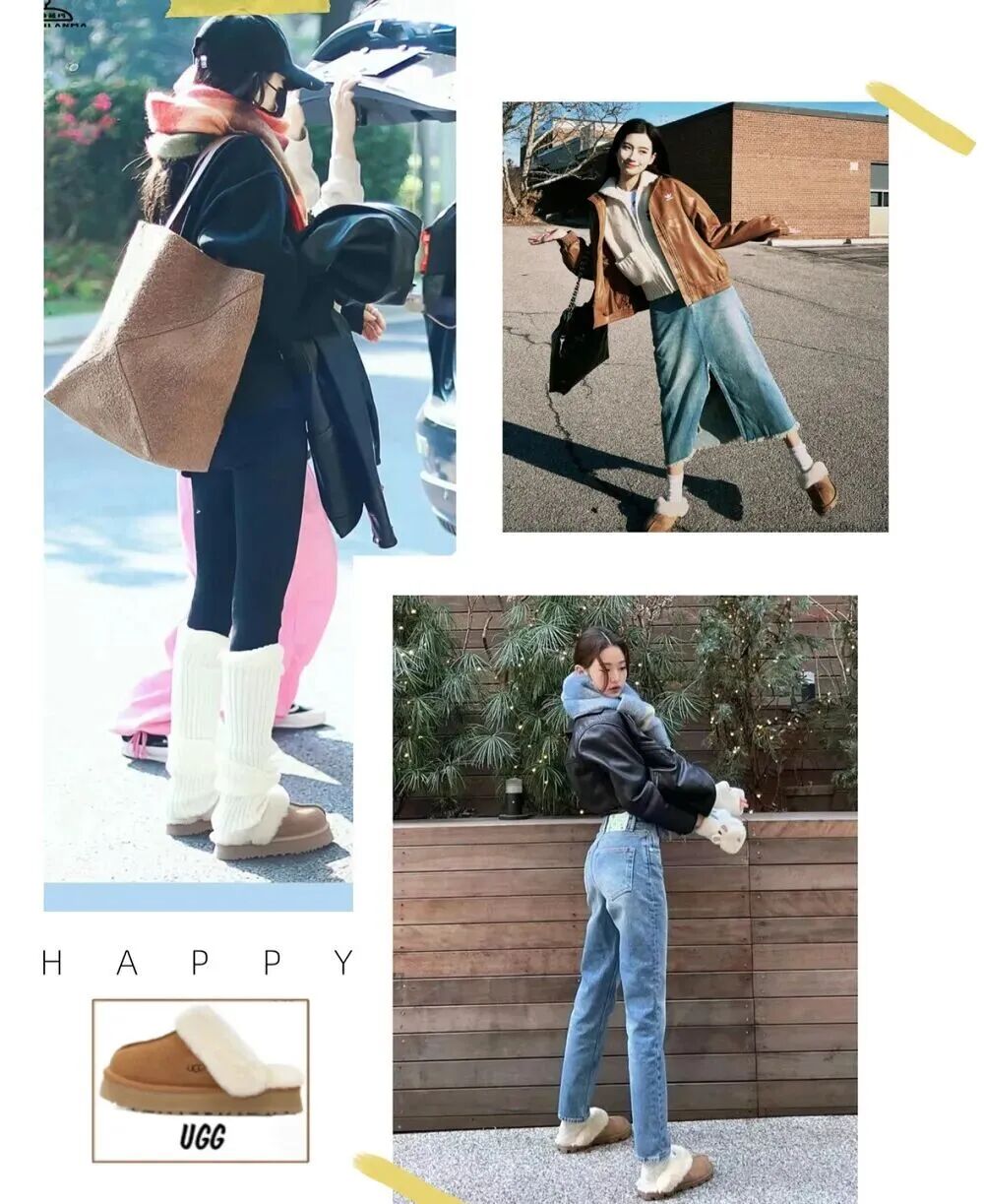 像大火了几个秋冬的U*G家的厚底绒拖,从明星到素人,一到冬天真是爱不释“脚”~