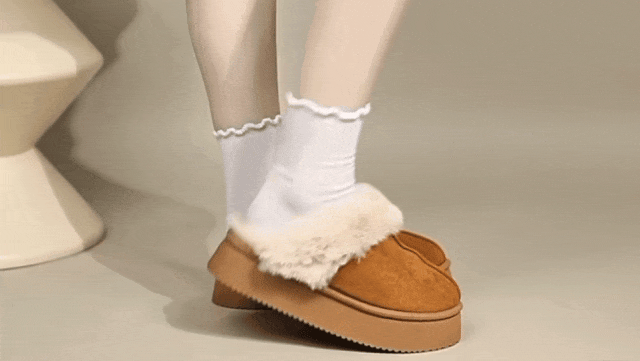 进口羊筋绒鞋面不压脚,覆着细细绒毛,稳稳隔开外界寒气,防风又保暖~