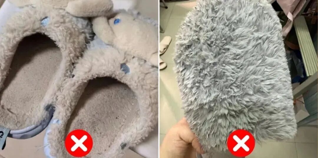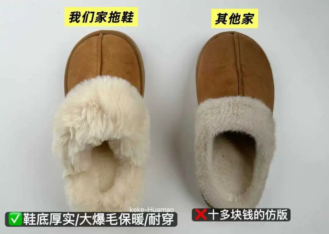 还有不少便宜棉拖只覆一层薄薄的绒毛,又塌又黏还容易湿哒哒,根本不保暖。