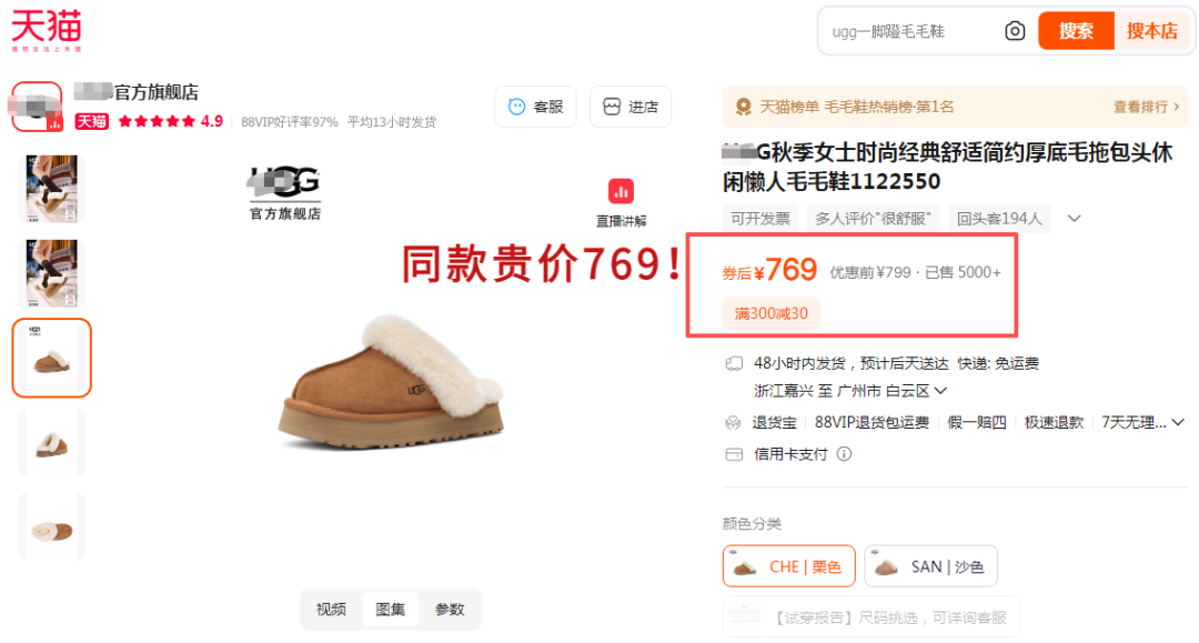 但话说回来,769买一双UG家的棉拖,价格真的有点肉疼...