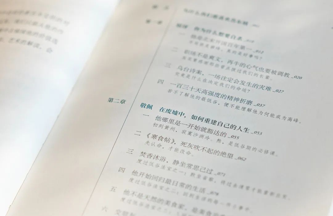 我在书里用了一整个章节,六个篇幅,逐一讲述了苏东坡从低谷走向豁达的过程,他度过低谷的四个法宝。