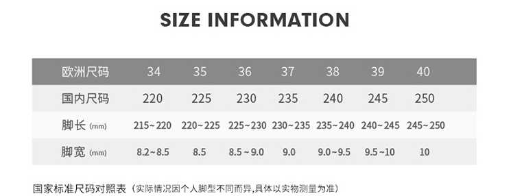 每个颜色都是34-40码,尺码很正,满足小伙伴们对不同颜色的喜好穿搭跟需求。