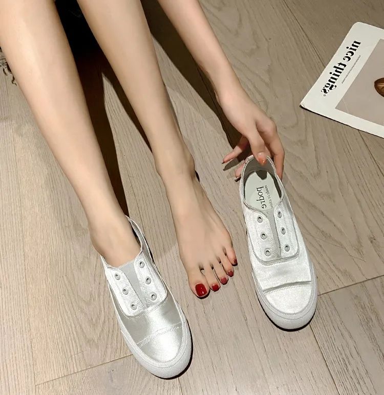 将华丽舒适的绸缎与小白鞋巧妙结合,精致又特别的感觉让人一眼就爱上。