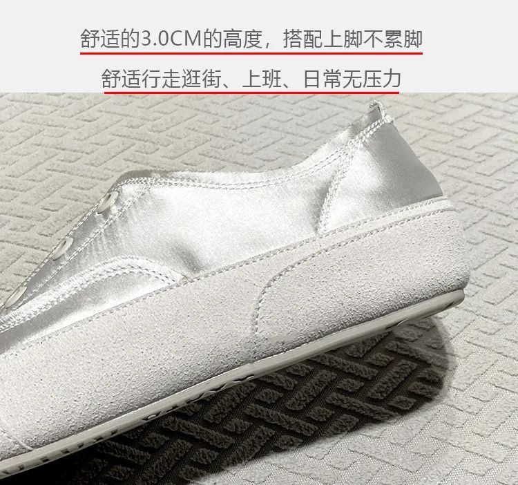 相比普通小白鞋,它真丝的质地华丽高级且富有光泽,颜值吊打普通小白鞋,堪称鞋履界的“白富美”~
