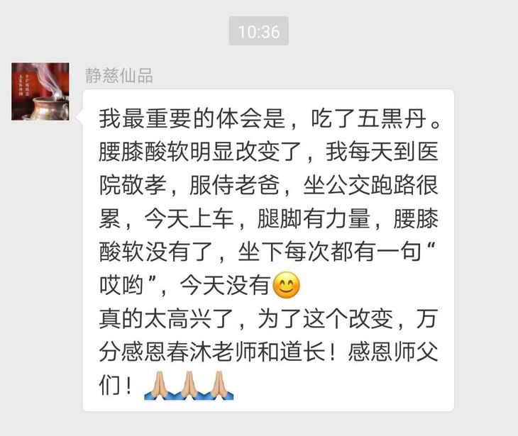 学员分享:服用五黑丹和芝麻丸后,每天早上都会出现活子时,精力充沛!