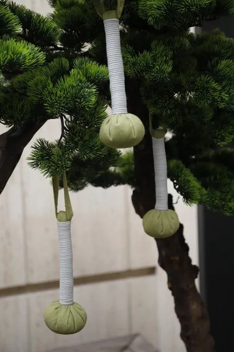 中药养生锤外层是绿色涤棉面料,不易变形;纯手工缝制,一针一线保证了使用时的舒适,每个手锤都经过挑选布料、裁剪、缝制、定型、手工缠绕等步骤完成。每个步骤都融汇了手艺人的匠心。