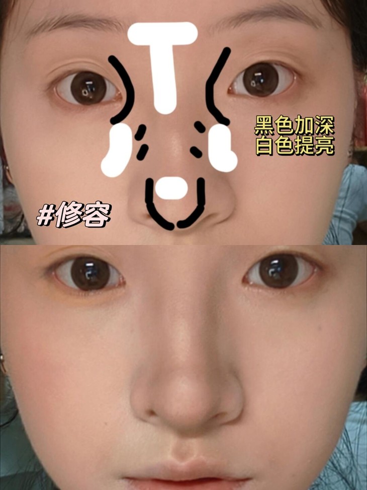 再用饱和度较高的颜色从鼻梁处开始向面中晕染,