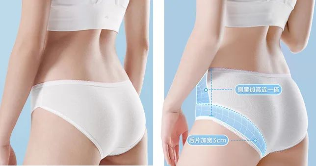 随着时间的推进,一次性内裤从“纸内裤”时代发展纯棉材质时代,不仅在材质面料上做了全面升级,在版型设计上也在不断的调整升级。因为纯棉面料的伸缩性相比无纺布的更大一点,所以在腰围尺寸及后片的长度上做了参数调整,缩短了5cm,上身版型更贴合。