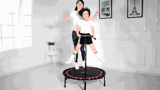 这样算,蹦跶20来分钟就相当于跑步1小时,让妈妈们坚持每天慢跑1小时可能大部分都做不到,但是如果只是在蹦床上跳上个30分钟,像我这样的“懒人”也能轻松搞定~~~