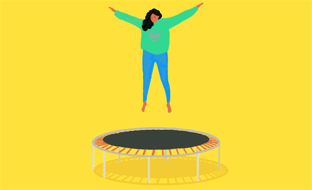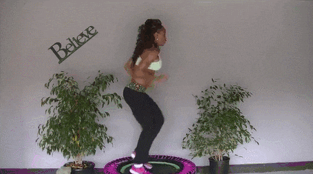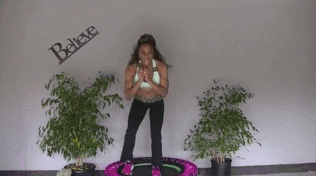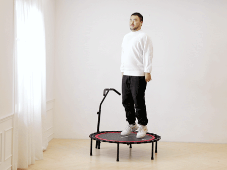 想要让蹦床运动起效,光是在上面蹦跶那有点太轻松啦~搭配一些简单的动作,坚持10分钟就能让你“暴汗”全身!