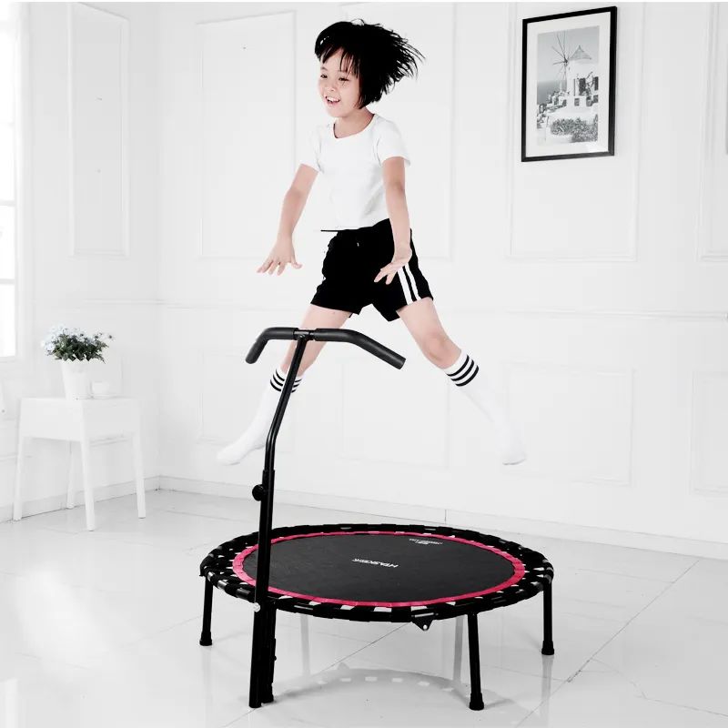 为了提高安全性,蹦床一侧增加了手扶杆,帮助保持平衡。