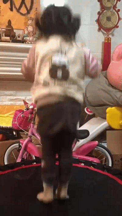 结果最后,妈妈直接就放飞了自己,双腿蹦到离地,还跳起老高的那种,本来以为只是轻微的试一下,没想到成了这样,袁成杰第一个感受到妈妈在后面的动静,开始有点惊讶!