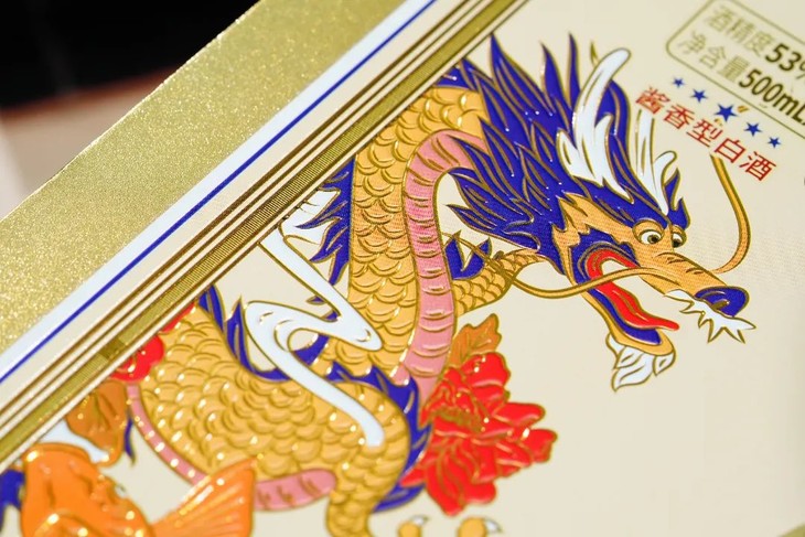 礼盒外包装,栩栩如生的金龙浮雕十分契合我们的中国文化。