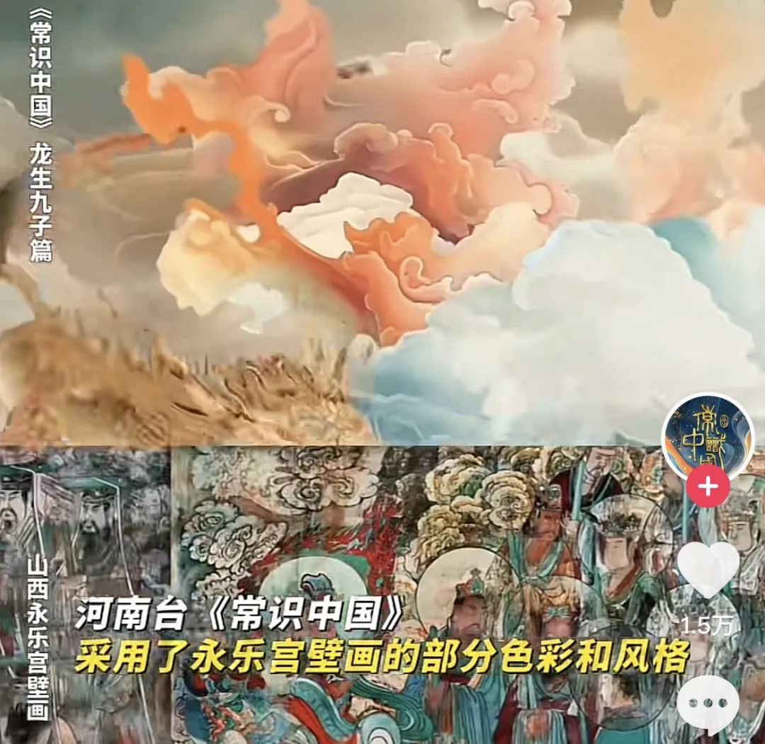 最近爆火的河南台《常识中国》节目,更是直接采用永乐宫壁画的色彩和风格。
