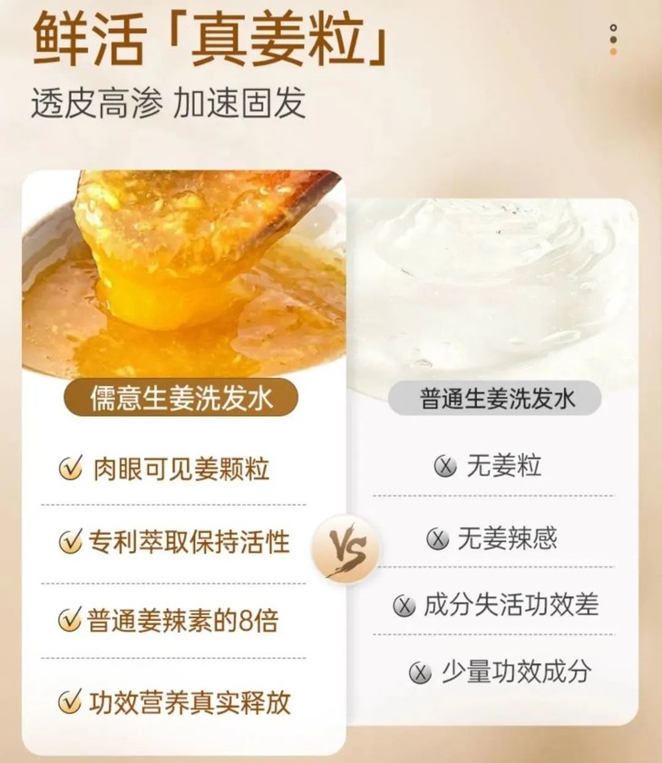而一些生姜洗发水呢?市面上很多无良商家,说是生姜精华,其实只添加了生姜香料,还有许多化学物质,没批文没资质,劝你别乱买!