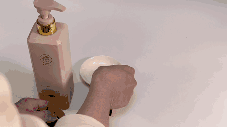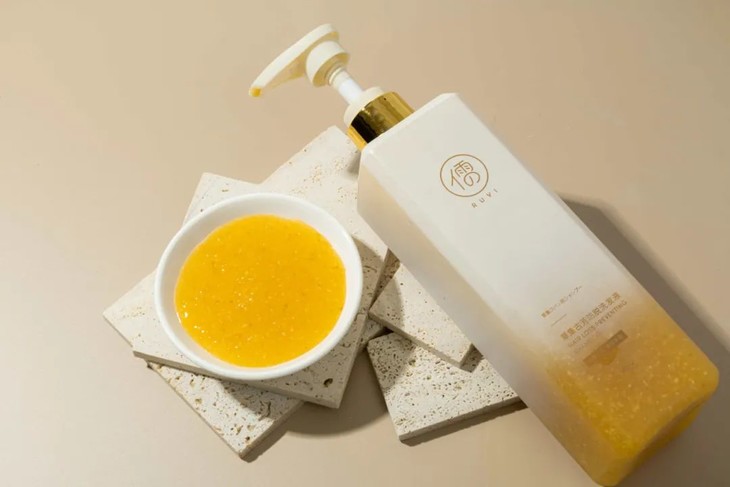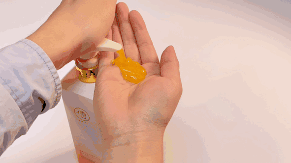 姜黄色的洗发液,粘稠到能拉出丝来,挤出一点点就能揉出浓浓的泡沫,伴随着肉眼可见的新鲜姜粒,再配上浓郁的姜味,有种姜糖的鲜与甜,好闻到真想一口吃掉!