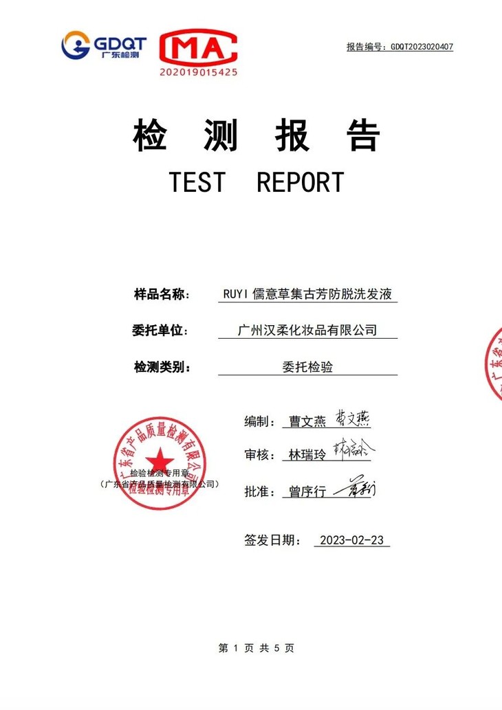 市面上打着防脱育发口号的洗发水很多,但是有专业检测报告的洗发水却少之又少。