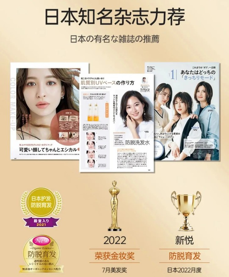 这款草集古芳防脱洗发液在香港/日本等各大药妆店都有销售,还获得了日本知名杂志的大力推荐!