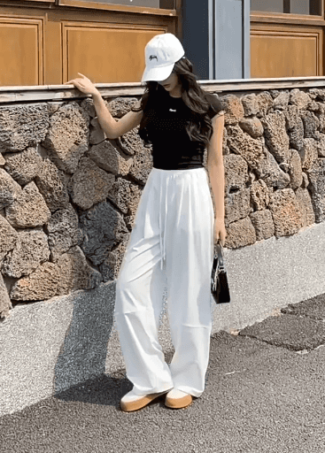 ❸微微拖地的裤长,在不拖沓的基础上有种延伸感,视觉上妥妥显高6CM拉长腿!