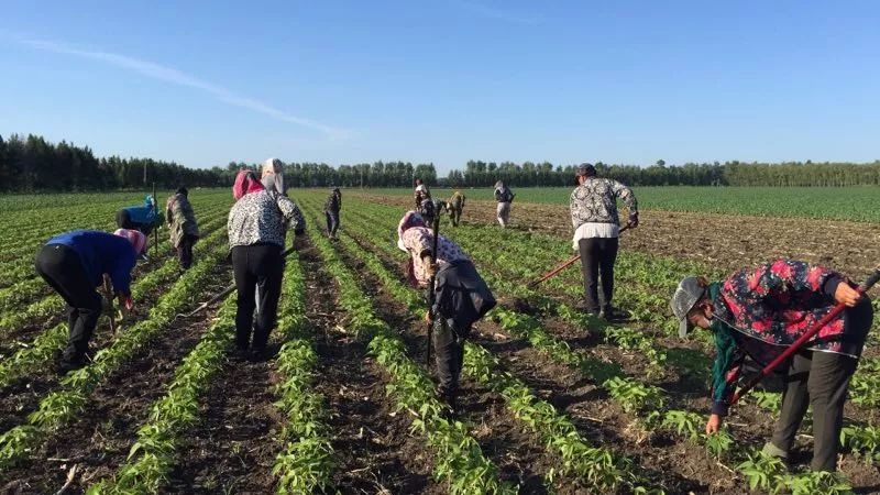 不用除草剂,克山基地会进行两遍除草。先使用机械除去行间的杂草,之后再人工去除株间杂草。