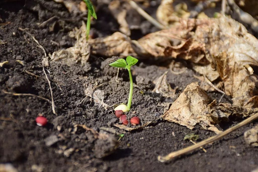 成熟的红小豆落在地里,因为条件合适,在秋天就发芽了。