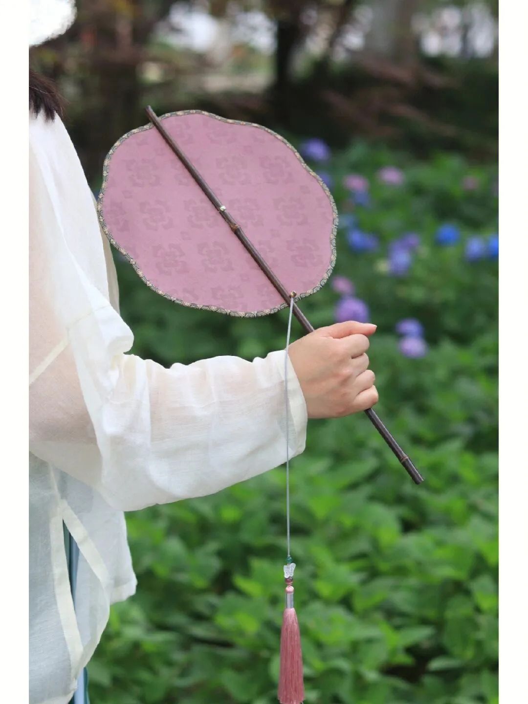闺阁仕女手摇团扇,清风徐来,不但可以平添主人娴雅文静的仪态,又能体现女性天真活泼的个性。